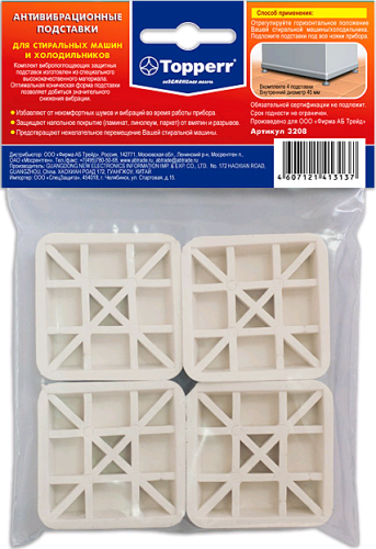 Оплата при получении . Заказ принимаете - после этого оплачиваете . Доставка , самовывоз . Купить недорого Антивибрационные подставки Topperr 3208 Официальная гарантия Низкая ценаХарактеристики